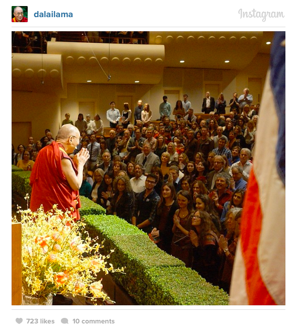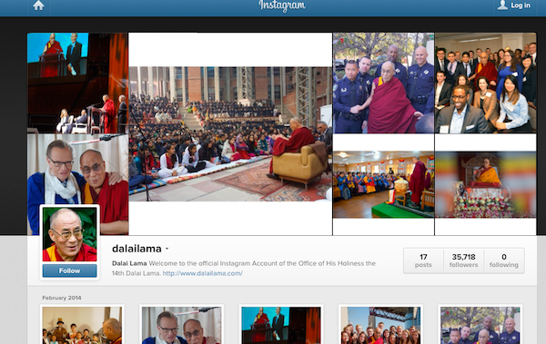 องค์ดาไล ลามะ ทำให้โลกประหลาดใจอีกครั้งด้วยการร่วมแสดงภาพภารกิจผ่านเครือข่ายสังคม Instagram ถือเป็นสัญญาณว่าผู้นำทางด้านจิตวิญญาณสูงสุดของชาวทิเบตรายนี้ต้องการเข้าถึงประชาชนผ่านเครือข่ายสังคมที่ถักทอเชื่อมต่อกันทั่วทุกมุมโลก