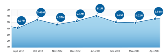 นอกจากความรู้ใหม่เรื่องค่าใช้จ่ายในการซื้อคอเกม งานนี้ Fiksu ยังเปิดเผยว่าชาว iPhone ดาวน์โหลดแอพพลิเคชันเกมในเดือนเมษายนมากกว่าเดือนมีนาคม ซึ่งเฉพาะในสหรัฐฯ บริษัทพบว่ามีการดาวน์โหลดแอพพลิเคชันราว 5.61 ล้านแอพต่อวัน เพิ่มขึ้น 11% จากเดือนมีนาคมที่ผ่านมา รายละเอียดตามกราฟด้านล่าง