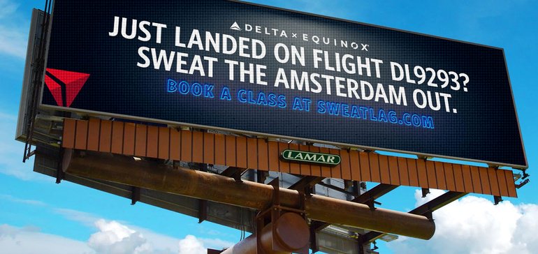 นี่คือกรณีศึกษาชั้นยอดของการทำแคมเปญดิจิทัลแบบอิงข้อมูลหรือ Data-Powered Digital Outdoor Campaign เพราะเคมเปญนี้ทำให้สายการบิน Delta และบริษัทให้บริการฟิตเนส Equinox สามารถเจาะกลุ่มนักท่องเที่ยว ให้มีทางออกถอนพิษ jet lag ได้ด้วยป้ายโฆษณาดิจิทัลหรือ digital billboard