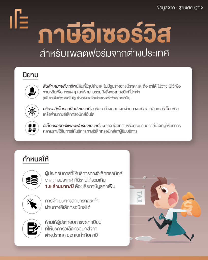 ที่มา : ฐานเศรษฐกิจ, เปิดรายละเอียด เก็บภาษีอี-เซอร์วิส “แพลตฟอร์มดิจิทัล” ต่างประเทศ