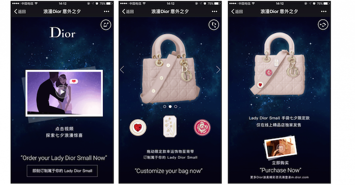Dior จึงมีภาพลักษณ์ไม่มีร้านออนไลน์ของตัวเองเพื่อจำหน่ายสินค้าแบรนด์ Dior รวมถึงสินค้าประเภทน้ำหอม เครื่องสำอาง และเครื่องประดับ แน่นอนว่าภาพลักษณ์นี้กำลังเปลี่ยนไปเพราะ Dior ตัดสินใจวางจำหน่ายกระเป๋าหิ้วหรูผ่านแอปพลิเคชันยอดฮิตของจีนอย่าง WeChat โดยประเดิมทำตลาดเมื่อสัปดาห์ที่ผ่านมา
