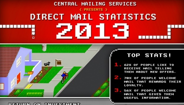 ปัจจุบันรูปแบบการทำตลาดส่วนใหญ่เน้นการให้ความสำคัญไปที่สื่อออนไลน์ เช่น โซเชียลมีเดีย, อีเมล รวมไปถึง SEO เพิ่มมากขึ้น จนอาจทำให้ละเลยการทำตลาดช่องทางเดิมอย่างการส่งจดหมายโดยตรง (Direct Mail) ซึ่งในวันนี้มีอินโฟกราฟฟิกจากเว็บไซต์ Centralmailingservice.co.uk เกี่ยวกับสถิติการทำ Direct Mail ในปี 2013 ที่อาจทำให้นักการตลาดและนักธุรกิจหันมาเปลี่ยนแนวความคิดและให้ความสนใจกับ Direct Mail เพิ่มมากขึ้น