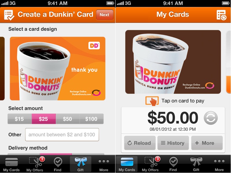 โดยการชำระเงินจะสามารถทำผ่านแอพพลิเคชัน Dunkin Donuts ซึ่งรองรับการใช้งานบนระบบปฏิบัติสมาร์ทโฟนยอดนิยมอย่าง Android และ iOS ซึ่งลูกค้าสามารถชำระเงินค่าอาหารและเครื่องดื่มได้ตามร้านสาขาได้ทั่วสหรัฐฯ ซึ่งงานนี้ลูกค้าจะสามารถสแกนรายการสินค้าจากบาร์โค้ดด้วยแอพฯ และจ่ายเงินได้ง่ายๆ ที่จุดจ่ายเงินเลย