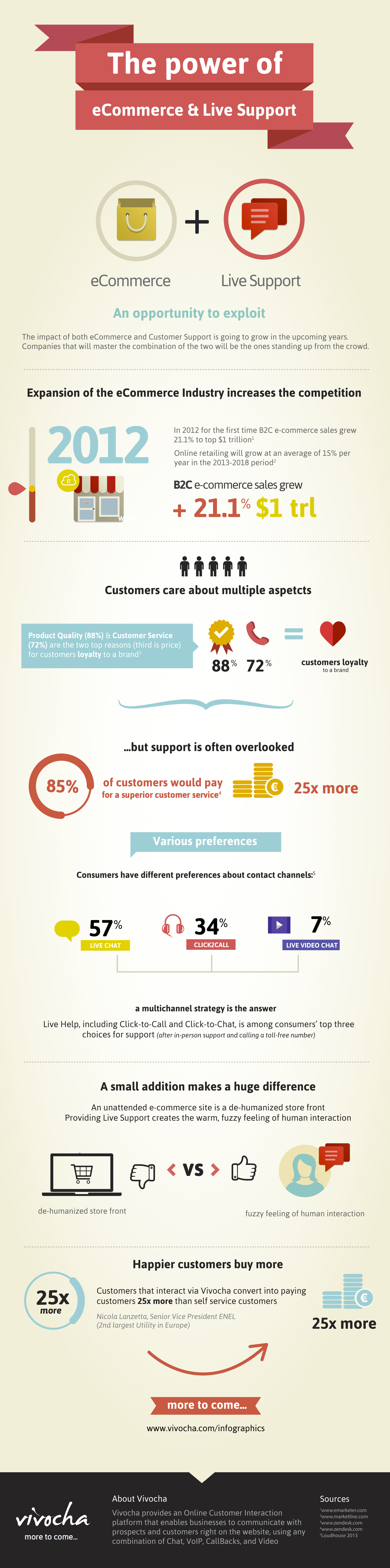 ก่อนนี้หลายคนอาจเข้าใจว่าธุรกิจจะประสบความสำเร็จได้หากมีหน้าเว็บไซต์อีคอมเมิร์ซ มีคนคอยตอบอีเมล แต่ Infographic นี้บอกเราว่าลำพังอีคอมเมิร์ซ และการสนับสนุนแบบทั่วๆ ไปอย่างเดียวนั้นไม่เพียงพอ แต่ต้องมี “Live Support” งานบริการแบบสดทันใจ ซึ่งเป็นอีกปัจจัยทรงพลังต่อความรู้สึกของผู้บริโภค