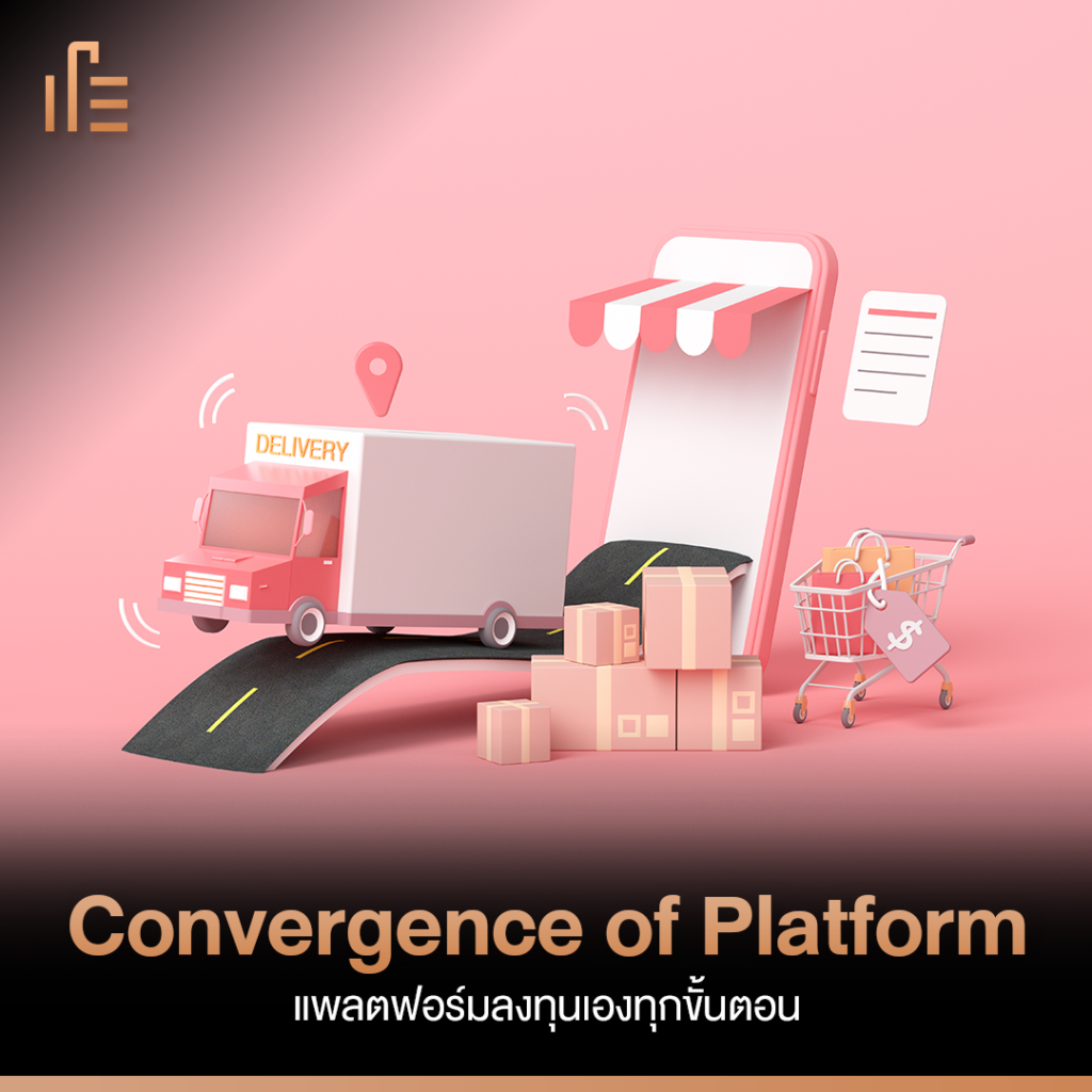 การขยายตัวของแพลตฟอร์มอีคอมเมิร์ซในประเทศไทยจะกินรวบตั้งแต่ต้นน้ำยันปลายน้ำ จากจุดเริ่มต้นของแพลตฟอร์มที่เน้นให้บริการเดียว ได้ขยายตัวให้บริการในด้านอื่นๆกันมากขึ้น จากภาพเราจะเห็นได้ชัดเจนว่า หลายๆแพลตฟอร์มได้ขยายตัวให้บริการตั้งแต่ สื่อ, โฆษณา, อีคอมเมิร์ซ, ธนาคาร ไปจนถึงระบบขนส่ง