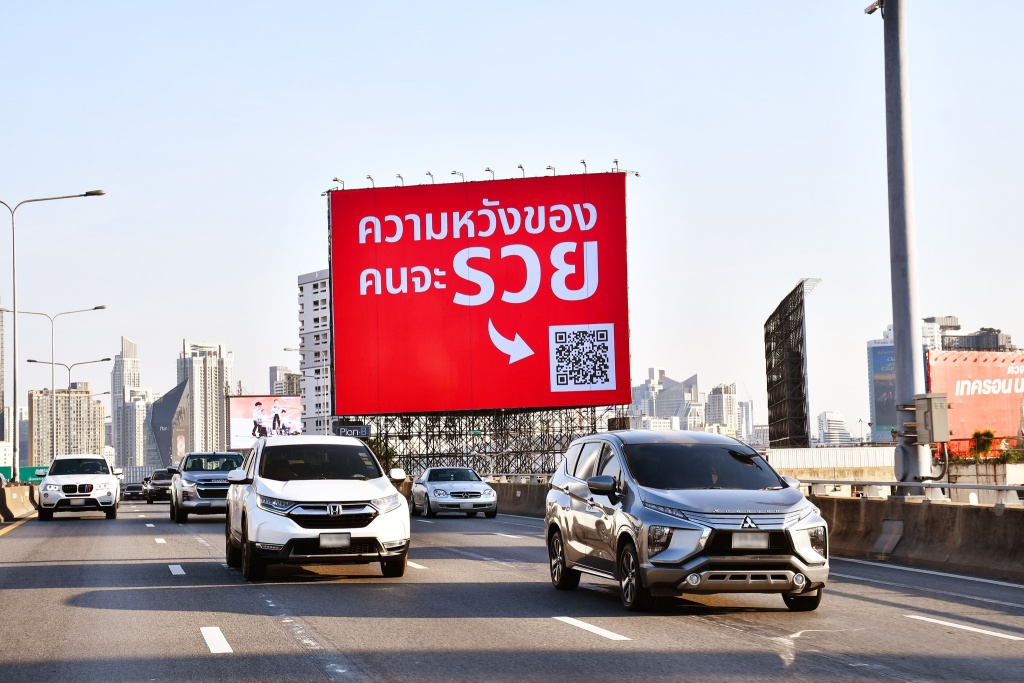 แคมเปญ “ความหวังของคนจะรวย” ใช้กลยุทธ์การสื่อสารแบบ O2O ที่ชาญฉลาด เริ่มต้นจาก “บิลบอร์ดสีแดง” (Physical Touchpoint) ที่ใช้สีสันจัดจ้านดึงดูดสายตาท่ามกลางความวุ่นวายของเมืองหลวง ก่อนจะเปลี่ยน Traffic จากท้องถนนให้กลายเป็นความสัมพันธ์บนโลกดิจิทัลผ่าน QR Code