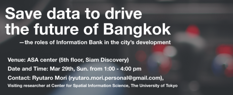 English VersionWorkshop: Save data to drive the future of Bangkok —the roles of Information Bank in the city’s development thumbsupteam March 24, 2015March 24, 2015