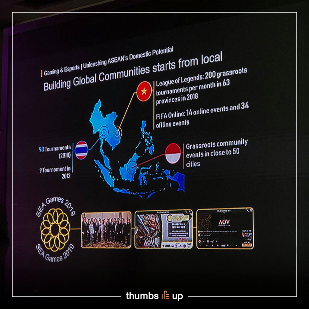 จากในปี 2012 ประเทศไทยมีการจัด Tournament แข่งขันเกมรวมกันเพียง 9 ครั้งเท่านั้น ซึ่งในปี 2018 ที่ผ่านมามีการจัดการแข่งขันเพิ่มขึ้นถึง 98 งาน โดยในปีเดียวกันที่ประเทศจีนก็มีการจัดการแข่งขันจำนวนมาก นับแค่ลีคทั่วไปของเกม League of Legend (LOL) ได้ถึง 200 ครั้ง/เดือน ใน 63 เขตทั่วประเทศ เช่นเดียวกับอินโดนีเซียที่มีอีเวนท์มากมายในกว่า 50 เมือง