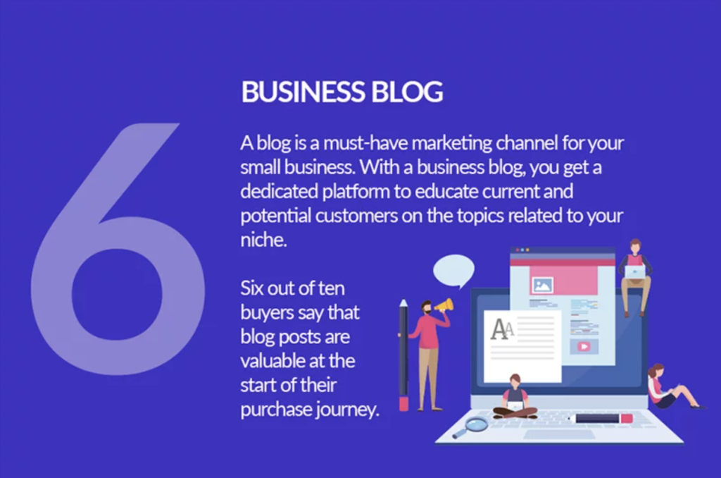 บล็อก (Blog) ถือว่าเป็นหนึ่งในช่องทางการตลาดที่สำคัญของทุกธุรกิจ การทำบล็อกเชิงธุรกิจ (Business Blog) จะช่วยให้ลูกค้าเข้าใจในธุรกิจของเราดีขึ้น หากคุณเป็นธุรกิจที่เฉพาะกลุ่มยิ่งควรมีแหล่งข้อมูลของธุรกิจ 6/10 ของผู้ซื้อบอกว่า การโพสต์ข้อมูลในบล็อกจะมีคุณค่าและเพิ่มโอกาสในการซื้อ (Purchase Journey)