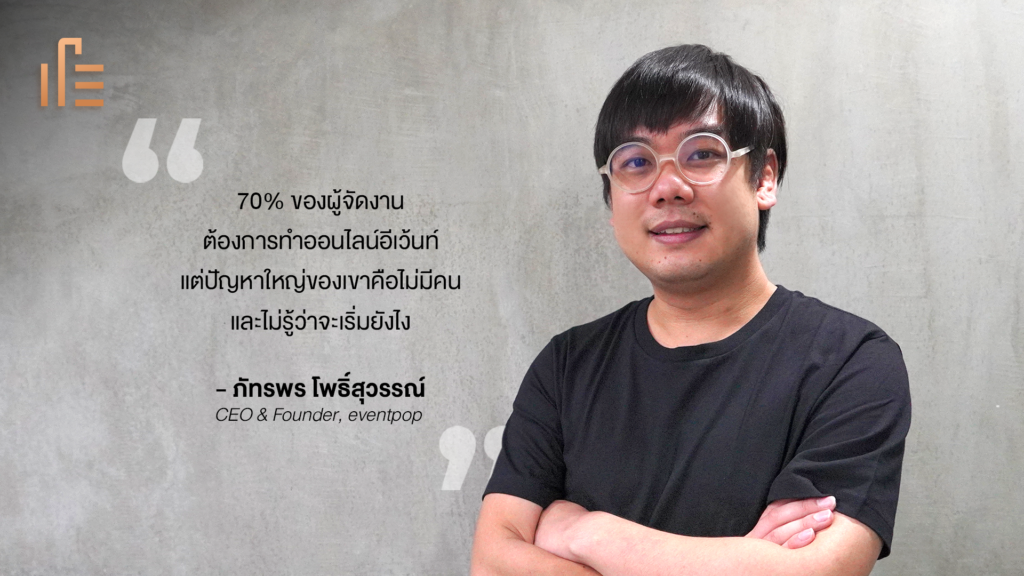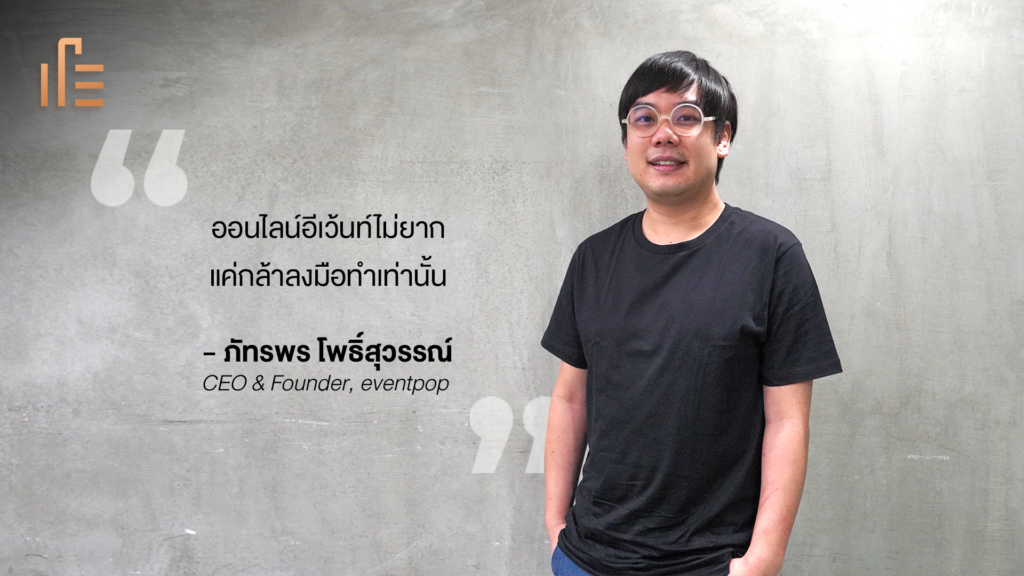 ทีมงาน thumbsup ได้คุยกับ คุณแม็กซ์-ภัทรพร โพธิ์สุวรรณ์ CEO & Founder บริษัท eventpop สตาร์ทอัพแพลตฟอร์มครบวงจรสำหรับอีเว้นท์ ที่มีการนำเทคโนโลยีเข้ามาช่วยในการทำงานบริหารจัดการระบบแบบครบวงจร ตั้งแต่การจำหน่ายบัตร ลงทะเบียนเข้างาน ไปจนถึงการจ่ายเงินแบบไร้เงินสด เกี่ยวกับธุรกิจอีเว้นท์และการปรับตัวหลังเจอวิกฤตโควิดทำให้ไม่สามารถจัดงานได้ จนต้องหาทางรอดได้อย่างน่าสนใจ