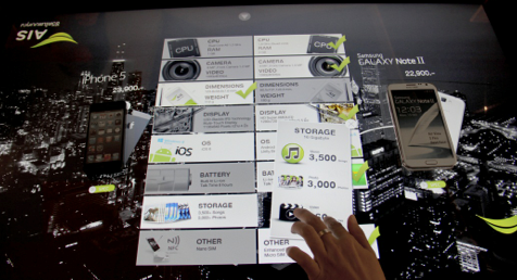 ด้วยคุวามสามารถพิเศษของโต๊ะ Multi Touch ยังช่วยให้ลูกค้ายังสามารถเปรียบเทียบเสปคมือถือแต่ละรุ่นได้ด้วยว่ามีคุณสมบัติแตกต่างกันอย่างไรบ้างในรูปแบบที่เข้าใจได้ง่ายแม้ลูกค้าจะไม่มีความรู้ด้านเทคโนโลยีมากเท่าไรนัก
