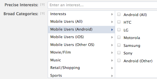 ทุกวันนี้คงปฎิเสธไม่ได้ว่ายี่ห้อของโทรศัพท์มือถือ สะท้อนรสนิยมในการบริโภคของผู้ใช้ ทาง Facebook เลยคิดทางเลือกใหม่ที่จะช่วยให้นักโฆษณาเข้าถึงกลุ่มเป้าหมายได้ง่ายขึ้นด้วยการเพิ่มตัวเลือกของระบบปฏิบัติการและประเภทของเครื่อง