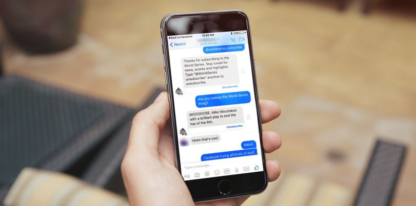 Facebook ยังคงพยายามอย่างต่อเนื่องที่จะไล่ให้ทัน Twitter ในแง่ของการเกาะติดเรียลไทม์อีเวนท์ ล่าสุดได้มีการเปิดให้ผู้ใช้งานบางส่วนได้ติดตามเบสบอลเมเจอร์ลีก หรือ MLB ซึ่งจะมีข้อมูลตั้งแต่ข่าวสาร ผลคะแนน และไฮไลท์ของแต่ละคู่ โดยทั้งหมดนี้จะมาในรูปแบบของการแชทแบบตัวต่อตัวผ่าน Messenger This-prompt-popped-up-in-Messenger-when-a-user-was-chatting-with-a-friend-about-the-Mets-Royals-game