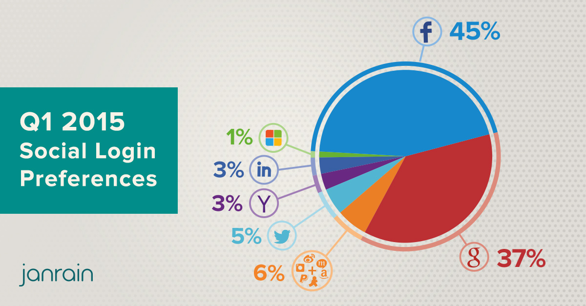Janrain บริษัทสำรวจข้อมูลบนออนไลน์ได้ออกรายงานเกี่ยวกับการใช้งาน Social Login ในช่วงไตรมาสแรกของปี 2015 ออกมา โดยมีข้อมูลที่น่าสนใจดังนี้