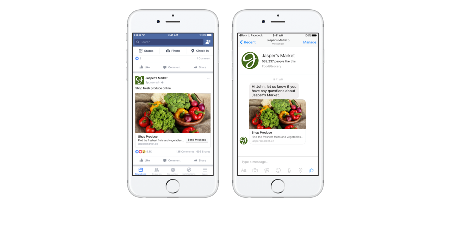 ข้อมูลจาก Marcus ระบุว่าโฆษณารูปแบบนี้จะทำให้ผู้ใช้ Facebook สามารถคลิกที่โฆษณาบน News Feed เพื่อสนทนากับบริษัทหรือแบรนด์นั้นได้โดยตรง โดยโฆษณาประเภทนี้จะเริ่มจุดพลุบน News Feed อย่างเร็วสัปดาห์นี้