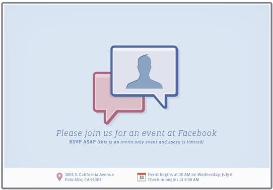 แน่นอนว่า Facebook ย่อมไม่ปล่อยให้ Google+ เรียกคะแนนความสนใจไปจากชาวไซเบอร์ได้ง่ายๆ ล่าสุด Facebook ได้ส่งเทียบเชิญให้สื่อชั้นนำได้เข้าร่วมงานแถลงข่าวเปิดตัวบริการใหม่แล้ว แต่แน่นอนว่าการจะเปิดเผยข้อมูลก่อนวันงานย่อมไม่เกิดขึ้นแน่ๆ ซึ่งบนเทียบเชิญเขียนเพียงสั้นๆ ว่า “กรุณามาร่วมงานของเราที่ Facebook” โดยมีการระบุว่างานนี้เป็นงานที่รับเฉพาะแขกที่ได้รับเชิญเท่านั้น และงานจะจัดขึ้นในวันพุธที่จะถึงนี้ นอกจากนั้นทีมงานของ Facebook เองก็ได้เกริ่นทิ้งท้ายเชิญชวนไว้สั้นๆ แค่ว่าบริษัทมีแผนที่จะเปิดตัว “อะไรสักอย่างที่สุดเจ๋ง” ในงานนี้ด้วย