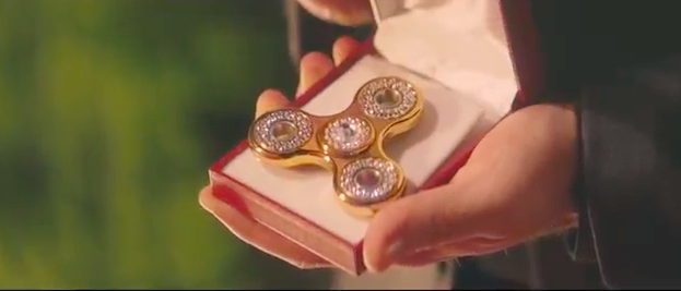 เนื้อเรื่องของโฆษณานี้เล่าถึงสาวผมแดงที่ได้รับ Fidget spinner ทองฝังเพชร แทนที่จะเป็นสร้อยคอหรือแหวนเพชรจากแฟนหนุ่ม เสียงพากษ์บอกว่า Fidget spinner จะทำให้เธอมีจุดโฟกัส เพราะสาวผมแดงรายนี้สมาธิสั้น และต้องใช้เวลากว่า 2 ปีกว่าจะอ่านนิยายขายดีของ Donna Tartt หนา 784 หน้าอย่าง ’The Goldfinch’ จบ