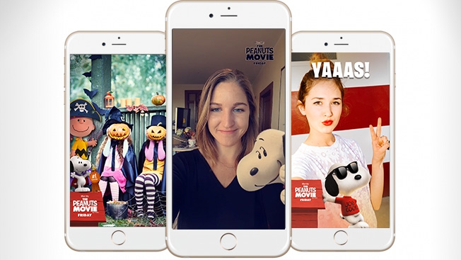 สตูดิโอดัง Twentieth Century Fox คือแบรนด์แรกที่ได้ชื่อว่าลงโฆษณาฟีเจอร์ Sponsored Lens บน Snapchat ผลการลงโฆษณานี้ทำให้ Twentieth Century Fox สามารถจุดกระแสให้วัยรุ่นอเมริกันรับทราบว่าภาพยนตร์ The Peanuts Movie กำลังพร้อมฉายในวันที่ 6 พฤศจิกายน