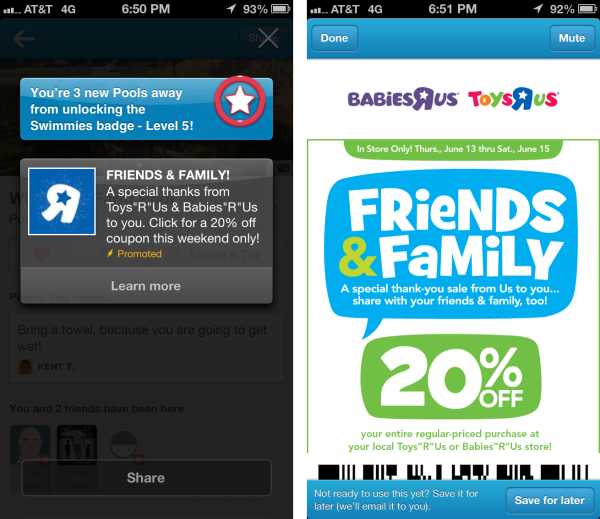 Foursquare บริการ Location-based ชื่อดังเริ่มเคลื่อนไหวในการหารายได้บนแพล็ตฟอร์มนี้อีกครั้ง ด้วยการเปิดตัวการแสดงโฆษณาหลังจากการ Check-in ที่จะแสดงโฆษณาตรงกลุ่มเป้าหมายตามที่ผู้ลงโฆษณากำหนดเพื่อแนะนำสินค้าและบริการ