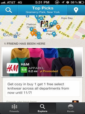 การเปลี่ยนแปลงนี้เกิดขึ้นในส่วนบริการ Foursquare Explore เมื่อผู้ใช้ค้นหาร้านอาหาร พิพิธภัณฑ์ สวนสาธารณะ หรือสถานที่อื่นๆในแท็บ Explore ระบบคะแนนใหม่จะปรากฏถัดจากชื่อสถานที่นั้นด้วยระดับคะแนนเต็ม 10 ทำให้ผู้ใช้เห็นภาพที่ชัดเจนว่าเป็นสถานที่ที่ชาว Foursquare ปลื้มหรือไม่ปลื้ม