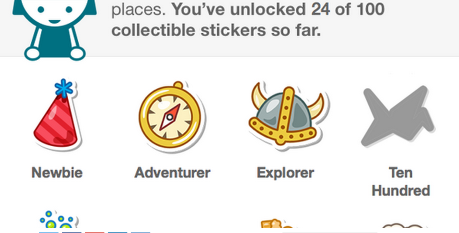 ระบบที่เราคุ้ยเคยกันดีในตอนที่ใช้ Foursquare ก็จะกลับมา หากอยากจะปลดล็อกสติ๊กเกอร์ ก็ต้องเช็คอินในสถานที่ประเภทนั้นหลายๆ ครั้ง เช่น ถ้าคุณอยากได้สติ๊กเกอร์ Mona ก็ต้องเช็คอินในสถานที่ประเภทอาร์ทแกลอรีหลายๆ ครั้ง ถ้าคุณพอจะจำได้ มันคือ Badge ที่มีชื่อว่า Warhol ใน Foursquare