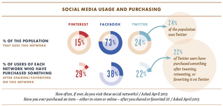 - 4 ใน 10 ของผู้ใช้สังคมออนไลน์ได้ซื้อสินค้างจริงๆ หลังจากที่ได้กด Like, กด Share หรือ Favorite ไว้บน Facebook, Twitter และ Pinterest