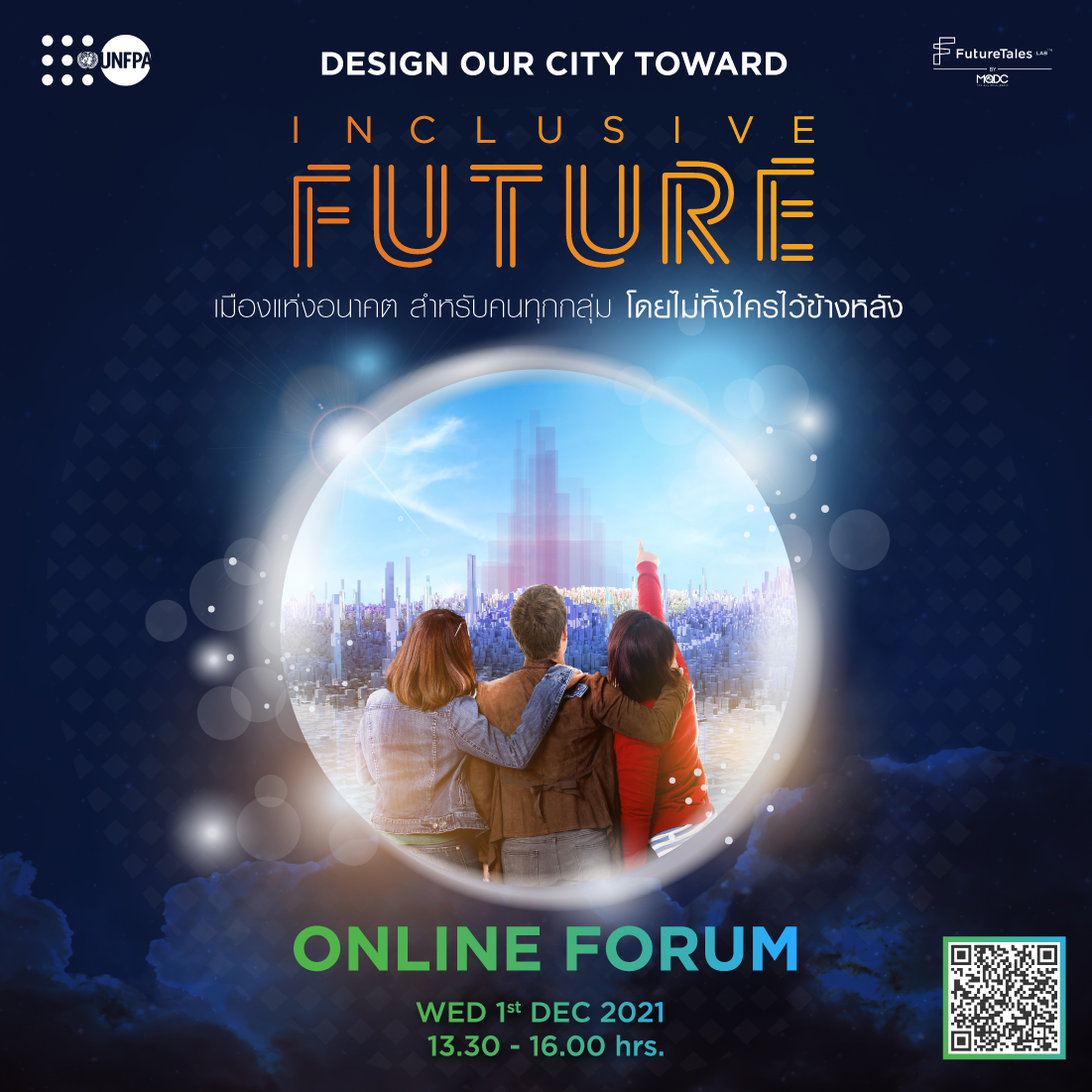 ศูนย์วิจัยอนาคตศึกษา ฟิวเจอร์เทลส์ แล็บ โดยบริษัทแมกโนเลีย ควอลิตี้ ดีเวล็อปเม้นต์ คอร์ปอเรชั่น จำกัด (FutureTales Lab by MQDC) และกองทุนประชากรแห่งสหประชาชาติ (UNFPA) ประเทศไทย เชิญชวนผู้สนใจร่วมงานสัมมนาออนไลน์ ผ่านทาง Facebook Live หัวข้อ “Design Our City Toward Inclusive Futures เมืองอนาคตสำหรับคนทุกกลุ่มที่ไม่ทิ้งใครไว้ข้างหลัง” เปิดพื้นที่สำหรับคนทุกกลุ่มเพื่อเสนอความคิด นโยบาย การปฎิรูปใหม่ที่จะไม่ทิ้งใครไว้ข้างหลัง เพื่อขยายภาพอนาคตให้เตรียมพร้อมกับการเปลี่ยนแปลง รวมถึงจะช่วยกระตุ้นความคิดและวิเคราะห์ในการสร้างเมืองได้รอบด้านมากยิ่งขึ้น ที่ครอบคลุมทั้งการใช้ชีวิต การทำงาน การเรียนรู้ การใช้เวลาว่าง การคมนาคม และการดูแลทุกชีวิตอย่างยั่งยืน
