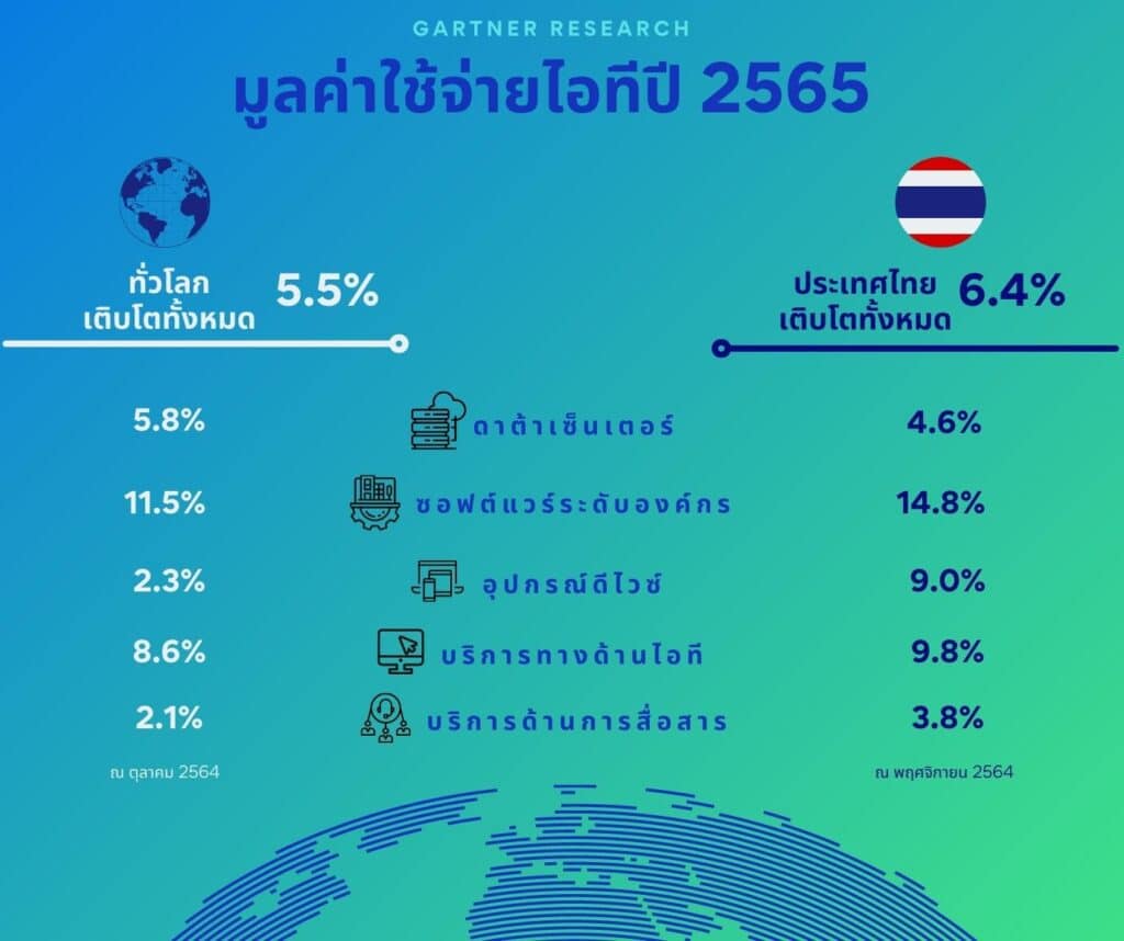 การ์ทเนอร์คาดการณ์แนวโน้มการใช้จ่ายไอทีทั่วโลกปี 2565 จะมีมูลค่า 4.5 ล้านล้านดอลลาร์สหรัฐฯ เพิ่มขึ้นเป็น 5.5% จากปี 2564
