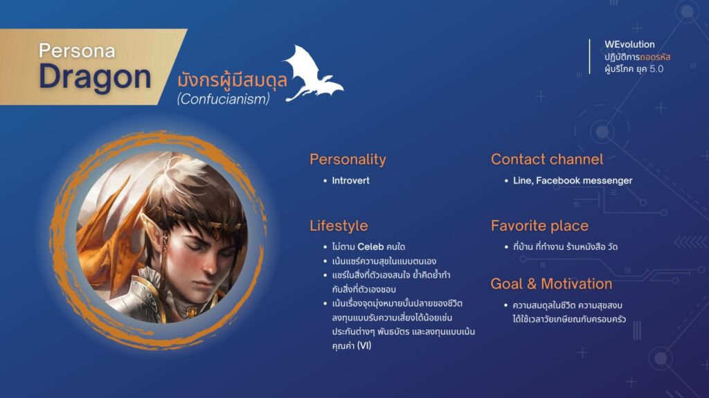 1. กลุ่มมังกร (Dragon) ผู้ต้องการความมั่นคงและสมดุลในชีวิต (Confucianism)