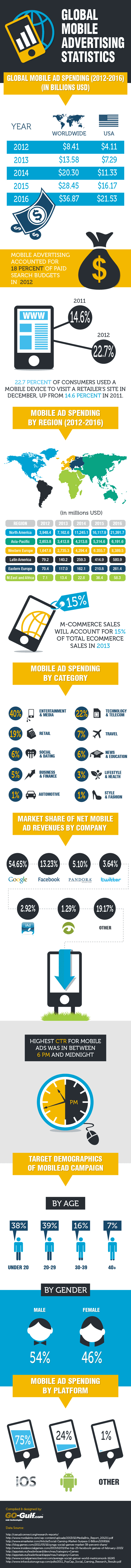 และจากมูลค่าการขายสินค้าบนโทรศัพท์มือถือที่เพิ่มสูงขึ้นอย่างต่อเนื่องนี้เอง ส่งผลทำให้นักการตลาดส่วนใหญ่หันมาให้ความสำคัญในการทำโฆษณาบนมือถือ (Mobile Advertising) เพิ่มมากขึ้น โดยเว็บไซต์ Gu-Gulf.com มีการประเมินว่าในปี 2013 รายได้ที่มาจากการลงทุนผ่านโฆษณาบนมือถือทั่วโลกจะมีมูลค่ารวมกันสูงถึง 13,580 ล้านเหรียญสหรัฐฯ และมีแนวโน้มทำสถิติเพิ่มขึ้นเกือบ 3 เท่าเป็น 36,870 ล้านเหรียญสหรัฐฯ ในปี 2016 และภายในปีเดียวคาดว่าสหรัฐฯแค่เพียงประเทศเดียวจะมีมูลค่าการลงทุนในการทำโฆษณาบนมือถือสูงถึง 21,530 ล้านเหรียญสหรัฐฯ
