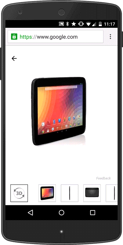 Google ลงมือเพิ่มความสามารถให้ผลเสิร์ชบนสมาร์ทโฟนและแท็บเล็ตเอื้อต่อการซื้อขายมากกว่าเดิม โดยปรับให้ผู้ใช้สามารถชมรายละเอียดรูปภาพสินค้าที่สนใจได้แบบ 360 องศา ซึ่งไม่เพียงหมุนภาพสินค้าได้รอบ แต่ Google ยังเพิ่มรายละเอียดร้านค้าที่วางจำหน่ายไว้ให้แบบครบถ้วน