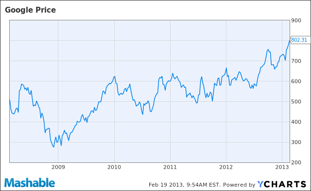 ถือเป็นประวัติศาสตร์หน้าใหม่ของ Google ยักษ์ใหญ่อินเทอร์เน็ตของโลกที่สามารถทำสถิติมูลค่าหุ้นบริษัทพุ่งขึ้นสูงสุดเป็นประวัติการณ์ โดยหุ้น Google ทะยานขึ้นไปแตะระดับ 800 ดอลลาร์สหรัฐฯ เมื่อวันอังคารที่ 19 กุมภาพันธ์ที่ผ่านมา