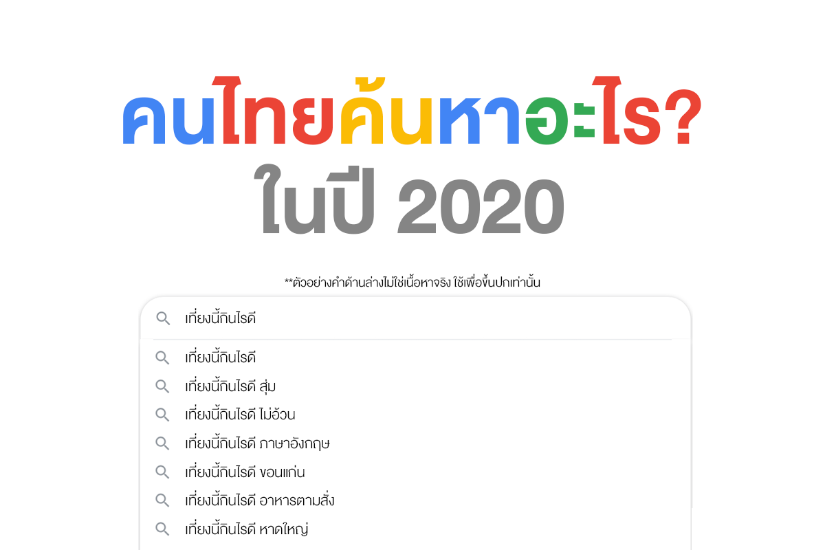 สำหรับปี 2020 ถือเป็นช่วงเวลาที่เกิดการเปลี่ยนแปลงขึ้นมากมาย การค้นหาจึงมีแนวโน้มที่เกี่ยวข้องกับการแพร่ระบาดของไวรัสโควิด-19 มาตรการช่วยเหลือของภาครัฐ และพฤติกรรมการปรับตัวเข้าสู่ออนไลน์ที่มากขึ้น