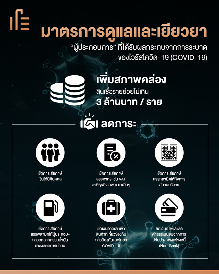 สรุปมาตรการดูแลและเยียวยา “ผู้ประกอบการ” ที่ได้รับผลกระทบจากการระบาดของไวรัสโควิด-19 (COVID-19) ประกอบด้วย 7 มาตรการ