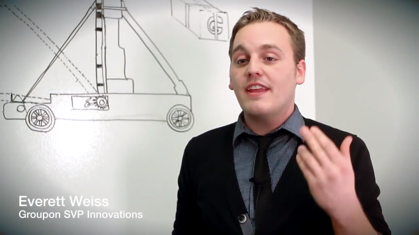 วิดีโอของ Groupon ยังฉายภาพของ Everett Weiss รองประธานฝ่ายนวัตกรรมขณะกำลังพูดถึงเทคโนโลยีเครื่องยิง Catapults ว่าได้รับการพิสูจน์และทดสอบมาแล้ว เพราะเครื่องยิงนี้เป็นเทคโนโลยีการจัดส่งหีบห่อบรรจุภัณฑ์ที่ได้รับการยอมรับมาตั้งแต่สมัยกษัตริย์อาเธอร์ แถมผู้คนในสมัยนั้นยังรู้วิธีที่จะรับสินค้าเพื่อให้สินค้าไม่ตกหล่นด้วย ทั้งหมดนี้คือสิ่งที่เครื่องยิงจะสามารถให้บริการได้พร้อมกับบริการยอดเยี่ยมของ Groupon
