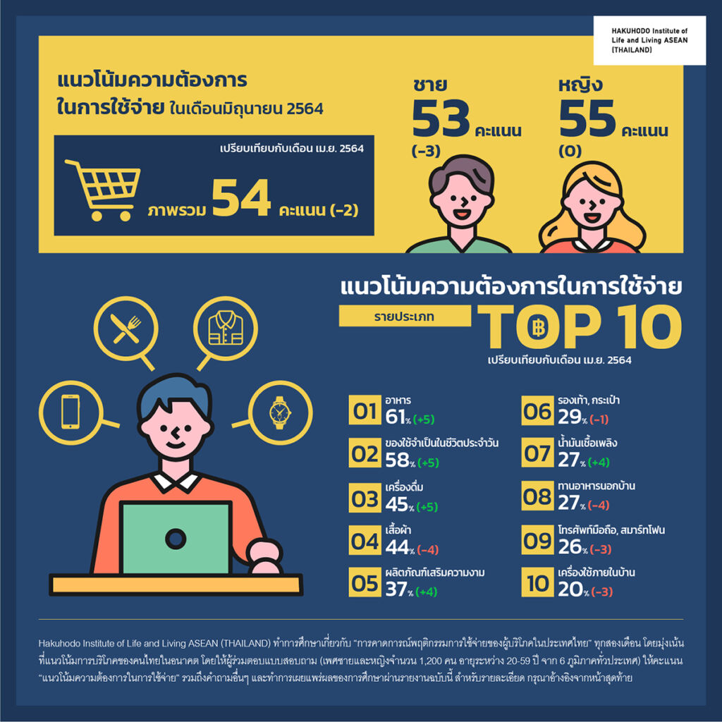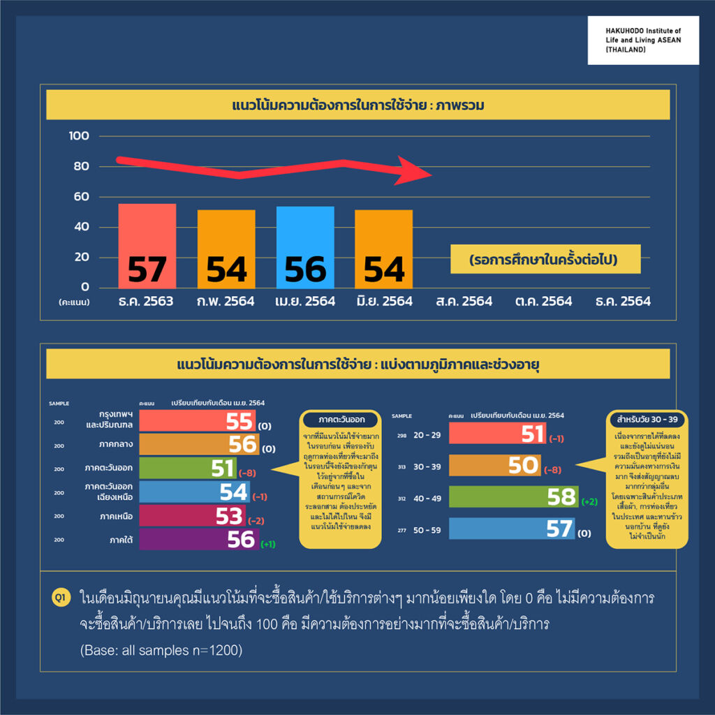 สถาบันวิจัยความเป็นอยู่ฮาคูโฮโด อาเซียน (ประเทศไทย) ร่วมกับ บริษัท สปา–ฮาคูโฮโด จำกัด เผยผลสำรวจการคาดการณ์พฤติกรรมการใช้จ่ายของผู้บริโภคในประเทศไทยประจำเดือนมิถุนายน 2564 พบว่าผู้บริโภคในสังคมไทยมีแนวโน้มกังวลกับสภาวะทางเศรษฐกิจ ที่เกิดจากการแพร่ระบาดของโควิด-19 ในระลอกที่สาม ส่งผลให้การใช้จ่ายโดยรวมลดลง