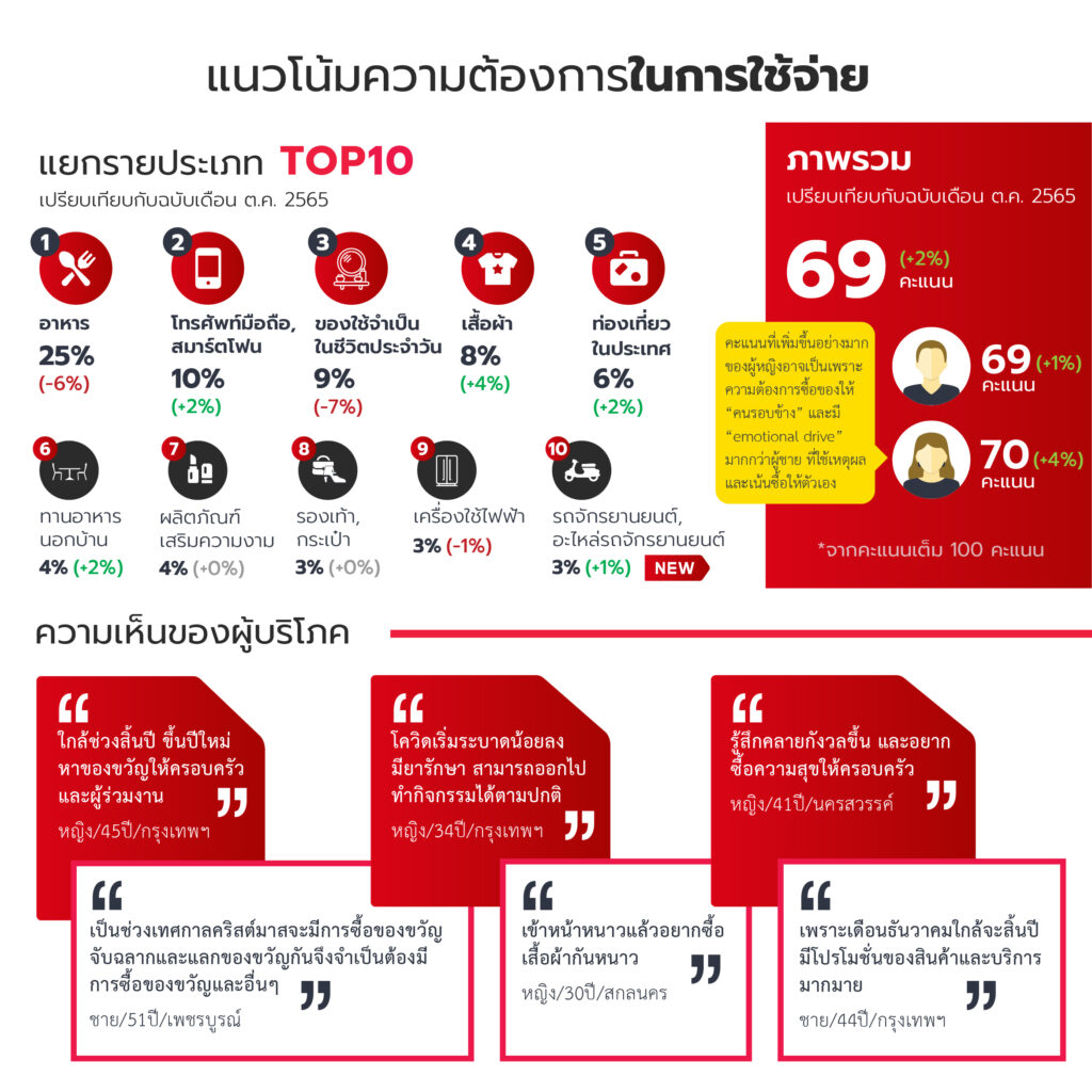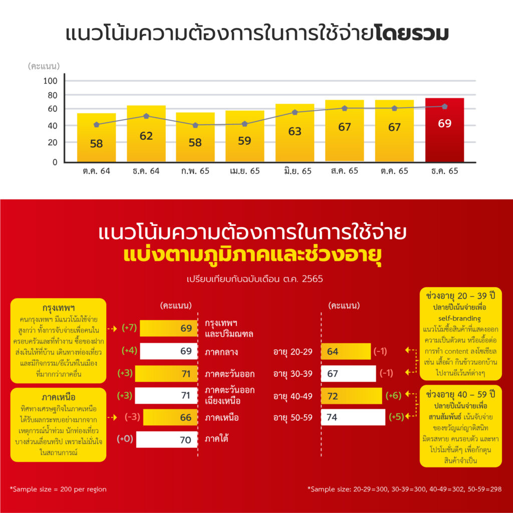 - แนวโน้มการใช้จ่ายสูงทำลายทุกสถิติในรอบ 2 ปี ที่ 69% โดยเฉพาะสินค้าที่ตอบสนองด้านอารมณ์