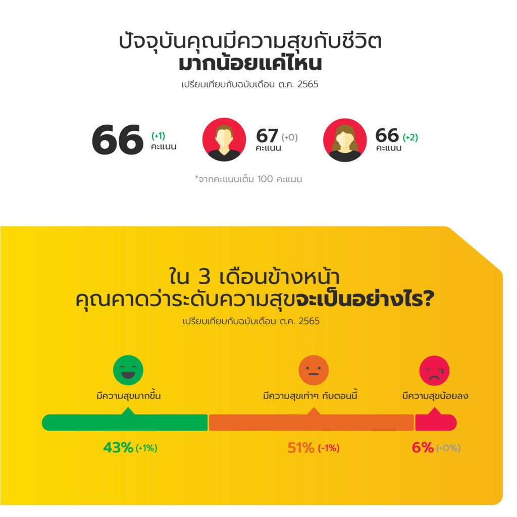 สถาบันวิจัยความเป็นอยู่ฮาคูโฮโด อาเซียน (ประเทศไทย) ร่วมกับ บริษัท ฮาคูโฮโด อินเตอร์เนชั่นแนล (จำกัด) เผยผลสำรวจเรื่องการคาดการณ์พฤติกรรมการใช้จ่ายของผู้บริโภคในประเทศไทยประจำเดือนธันวาคม พ.ศ. 2565 ว่า คนไทยมีแนวโน้มในการใช้ชีวิตที่ดีขึ้นอย่างต่อเนื่อง ทั้งด้านความต้องการอยากใช้จ่ายที่แตะระดับสูงสุดในรอบ 2 ปี และความสุขที่ยังบวกขึ้นอีกเมื่อเทียบกับหลายเดือนที่ผ่านมา แสดงให้เห็นถึงวิถีชีวิตคนไทยในตอนนี้มูฟออนจากโควิด-19 อย่างแท้จริง