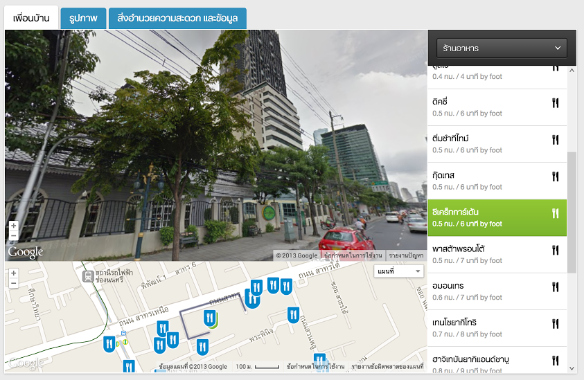 เครื่องมือสำรวจย่านใกล้เคียงที่ช่วยให้ผู้ที่ต้องการเช่าหรือซื้อคอนโดสามารถเข้าไปสำรวจพื้นที่จริง และค้นหาตัวเลือกในการเดินทาง เช่น ร้านค้า โรงเรียน ร้านอาหาร และสถานที่อื่นๆ อีกมากมายที่อยู่ในบริเวณใกล้เคียงกับคอนโดมิเนียมกว่า 2,000 แห่งทั้งในกรุงเทพฯ และพัทยา