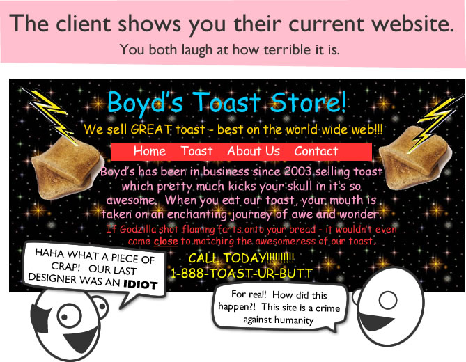 ลูกค้าเริ่มโชว์เว็บเก่าที่แสนห่วยให้คุณดู คุณกับลูกค้าหัวเราะลั่นกับดีไซน์ห่วยๆ
