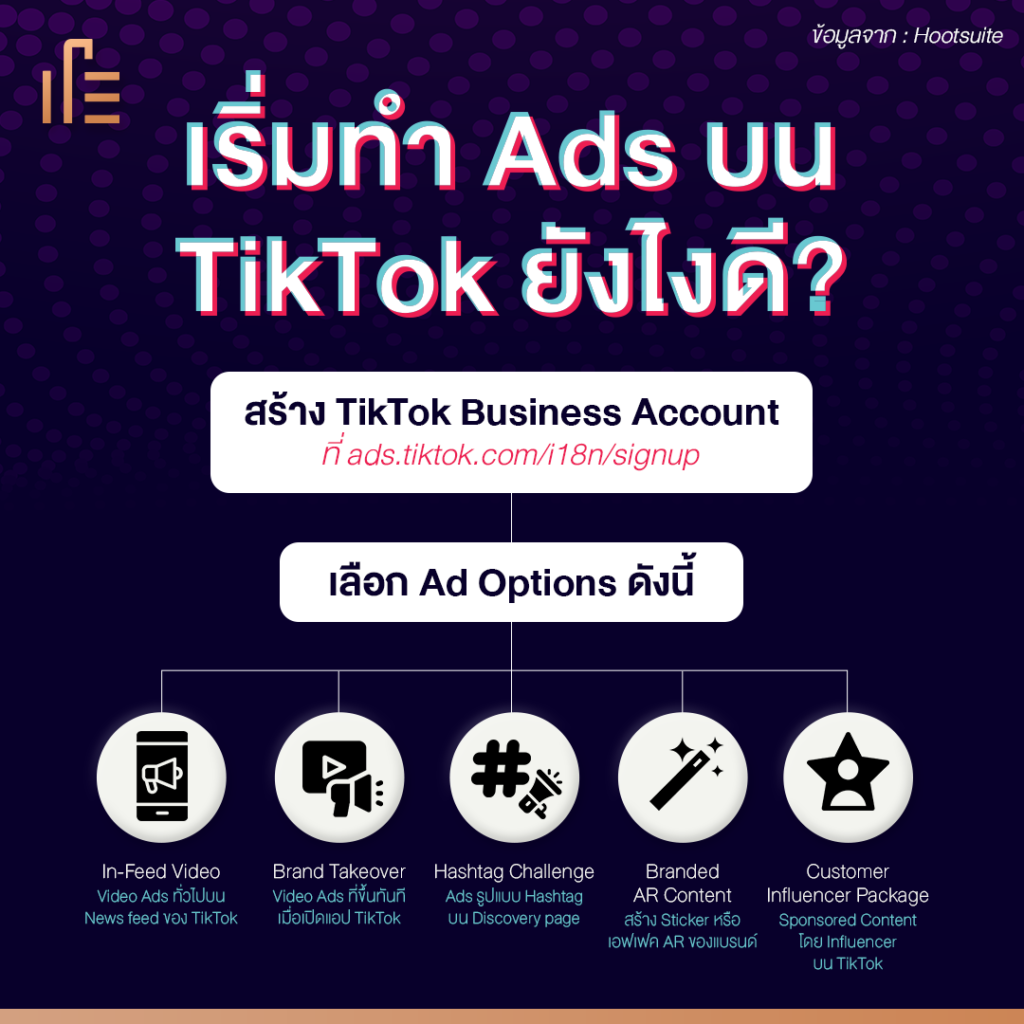 Tiktok มีรูปแบบการทำโฆษณาที่หลากหลายเพื่อให้ถึงกลุ่มเป้าหมายได้เป็นอย่างดี ไม่ว่าจะเป็น