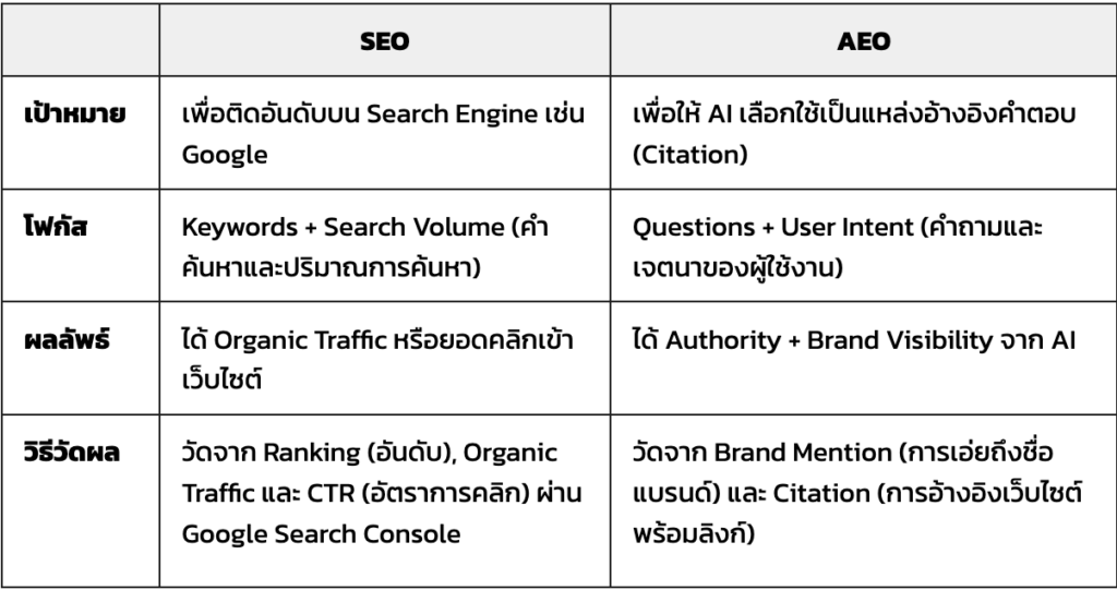 - AEO ต่างจาก SEO อย่างไร