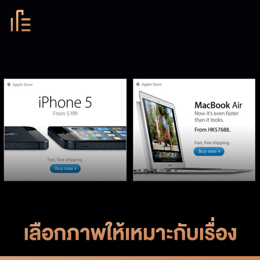 ภาพพื้นหลังของ Banner Ads ควรเลือกให้เหมาะกับสีฟ้อนต์ เพราะจะส่งเสริมให้เห็นชัด อ่านสบายตา เพิ่มการจดจำด้วยนะคะ เพราะภาพประกอบต้องเห็นชัด จากภาพนี้จะเห็นได้เลยว่าสินค้ามีความโดดเด่นและสื่อสารชัดเจนว่าต้องการขายสินค้าอะไร ต้องเป็นแบบเห็นแว้บเดียวและเก็ตเลยค่ะ