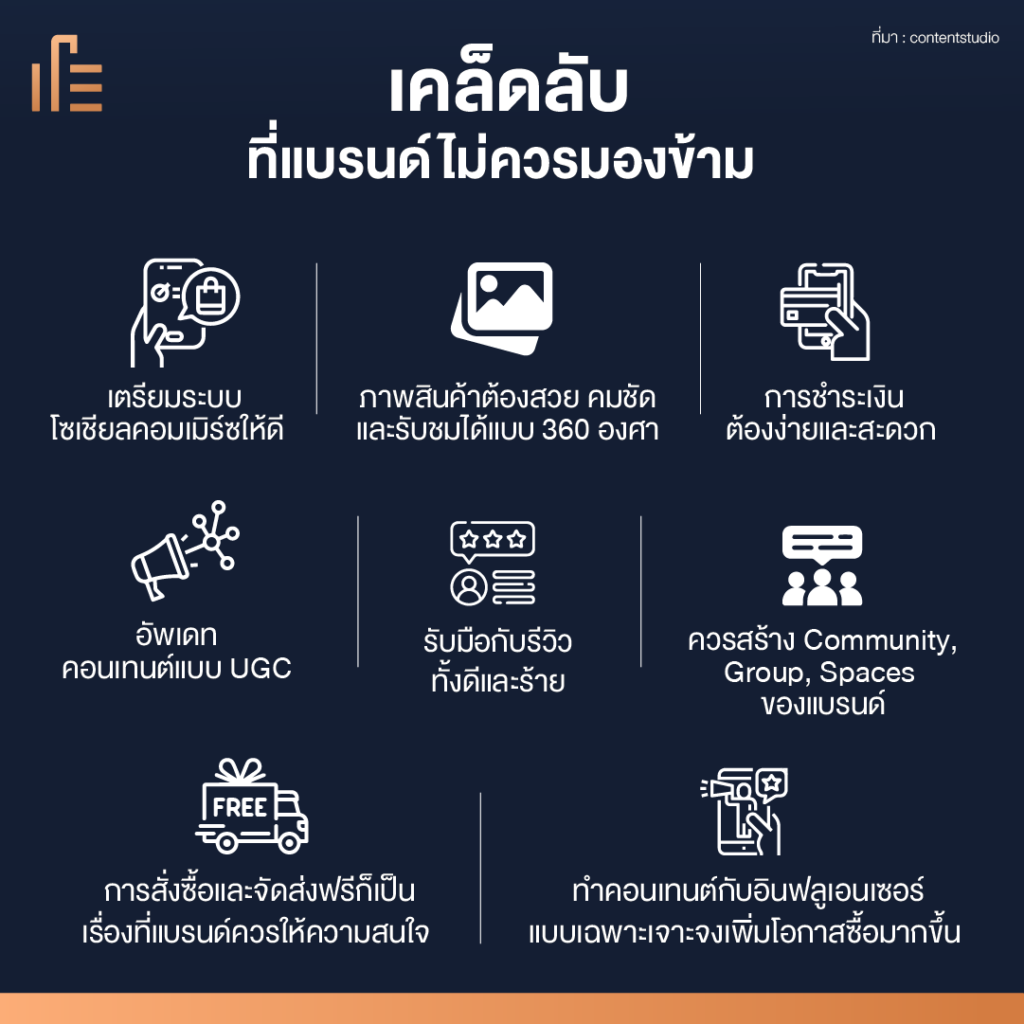 - เตรียมระบบโซเชียลคอมเมิร์ซให้ดี