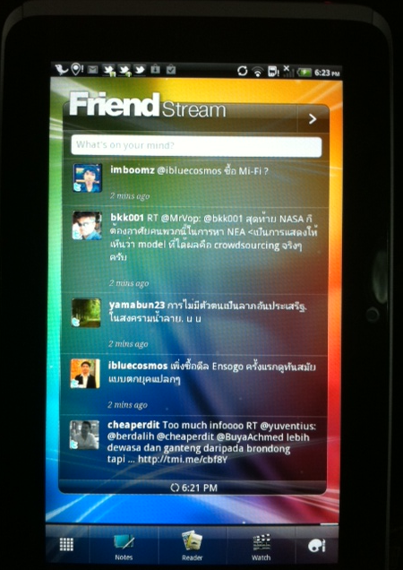 ใน FriendStream สามารถดูข้อมูลจากเพื่อนๆ ใน Social Network ดังๆ ได้สะดวกสบายมากขึ้น อย่างในรูปเป็น Timeline ที่มาจาก Twitter แบบ RealTime