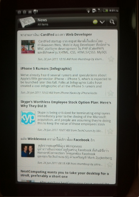 หรือถ้าใครชอบอ่านข่าวกันเป็นประจำสามารถเปิดเข้ามาที่ News ซึ่งได้ทำการผูกกับ Account ของ Google Reader ไว้ คราวนี้ทุกเช้าเราก็สามารถติดตามอ่านข่าวกันได้อย่างสบายๆ