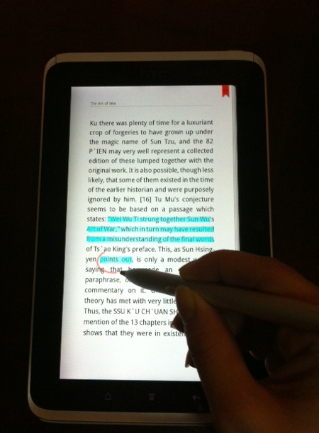 ทีนี้หลายคนอาจสงสัยว่าแล้วการอ่านหนังสือกับ app อื่นล่ะ เช่น Kindle มันจะทำไฮไลน์ได้ไหม ต้องออกตัวว่าไม่ได้จ๊ะ อย่างไรก็ตามแอบเห็นข่าวแว๊บๆ ว่าทาง HTC จะเปิด SDK ให้นักพัฒนา หวังว่าอนาคตน่าจะได้เห็นอะไรดีๆ กับ app อื่นๆ ต่อจากนี้นะ