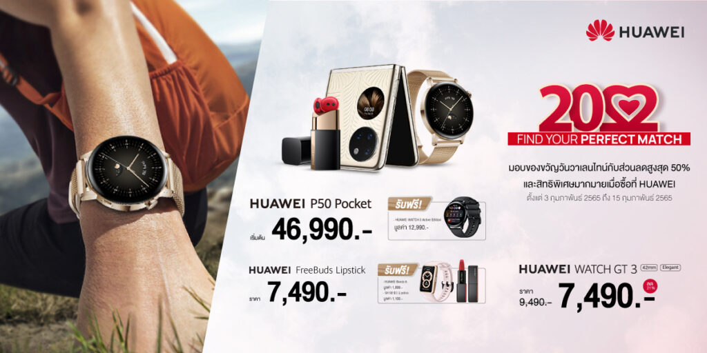 พร้อมรับ HUAWEI Care การขยายเวลารับประกันเพิ่มเติมฟรี 12 เดือน มูลค่า 479 บาท นอกจากนั้นยังสามารถหาซื้อไปจับคู่กับสมาร์ทโฟนเรือธงแบบพับรุ่นใหม่ล่าสุดดีไซน์สวยสามมิติ HUAWEI P50 Pocket ราคาเริ่มต้น 46,990 บาท ให้ช่วยมอนิเตอร์สุขภาพร่างกายใส่ใจกันไปเลยรอบด้าน