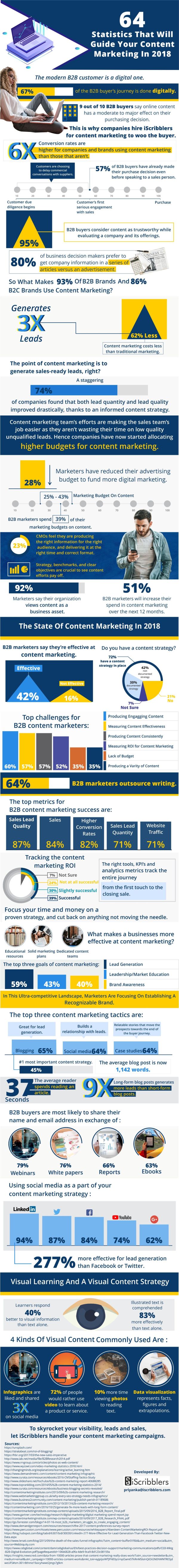ถือว่าครบรสสำหรับ 64 สถิติล่าสุดในแวดวง Content Marketing ประจำปีนี้ที่ถูกรวบรวมใน Infographic ของบริษัท iScribblers ซึ่งหนึ่งใน 64 สถิตินี้ย้ำชัดว่าบริษัทที่มีกลยุทธ์การตลาดด้วยเนื้อหาหรือ Content Marketing จะมีอัตรา Conversion Rate ที่สูงกว่าบริษัทที่ไม่มีถึง 6 เท่าตัว