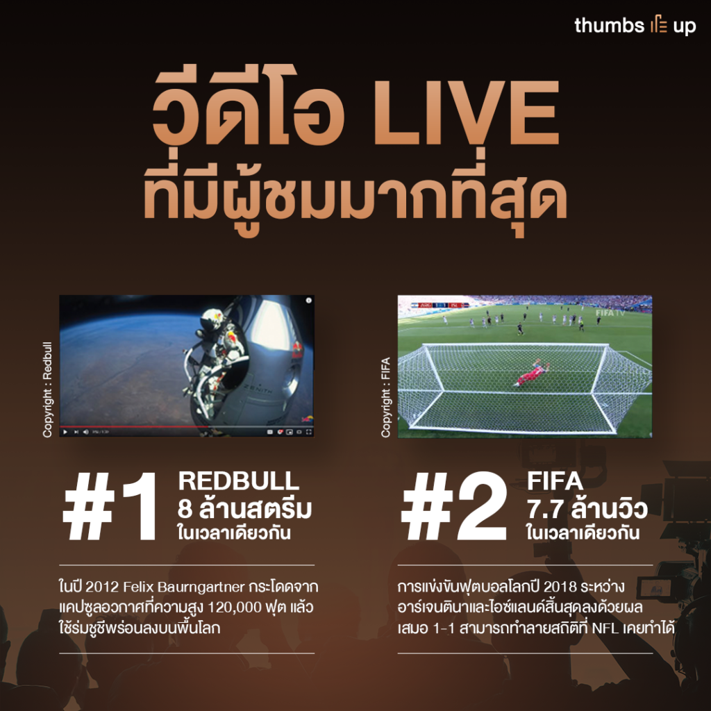 # 1 Red Bull – 8 ล้านสตรีมในเวลาเดียวกัน: ในปี 2012 Felix Baurngartner กระโดดจากแคปซูลอวกาศที่ความสูง 120,000 ฟุต แล้วใช้ร่มชูชีพร่อนลงบนพื้นโลก